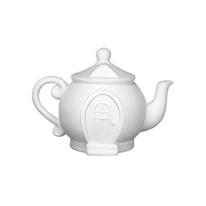 Biskwit ceramiczny Domek wróżek czajnik to gotowy do dekorowania wyrób przeznaczony dla pracowni ceramicznych, kawiarnia ceramiczna i zajęć edukacyjnych. Surowa powierzchnia biskwitu doskonale przyjmuje szkliwa, farby podszkliwne i angoby.