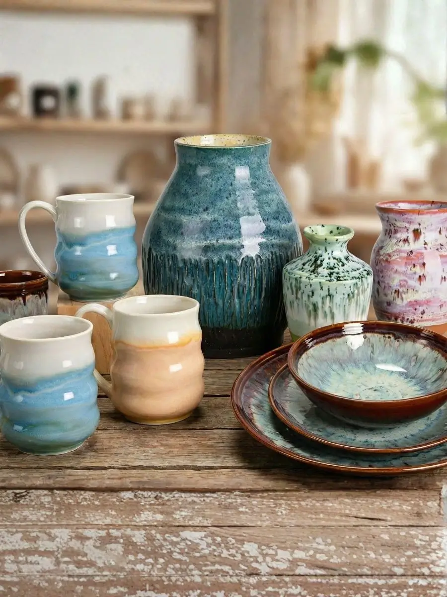 Pracownie ceramiczne i studia PYOP korzystają z szkliw ceramicznych Mayco Stroke & Coat jako głównej bazy kolorystycznej, uzupełniając ją o farby podszkliwne Fundamentals do precyzyjnych detali. Szkliwa efektowe Elements i krystaliczne Jungle Gems stosowane są przez doświadczonych ceramiców poszukujących efektów organicznych i mineralnych.